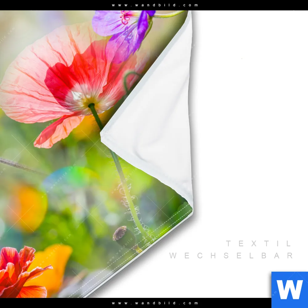 Wechselmotiv Textil | Blumenwiese mit Schmetterlingen | Quadrat