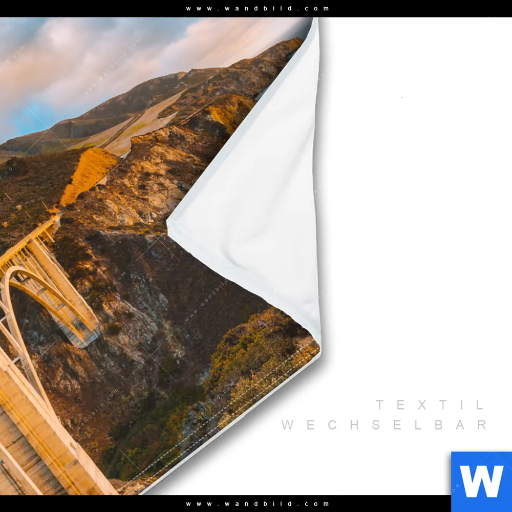 Wechselmotiv Textil | Brücke an der Küste | Quadrat