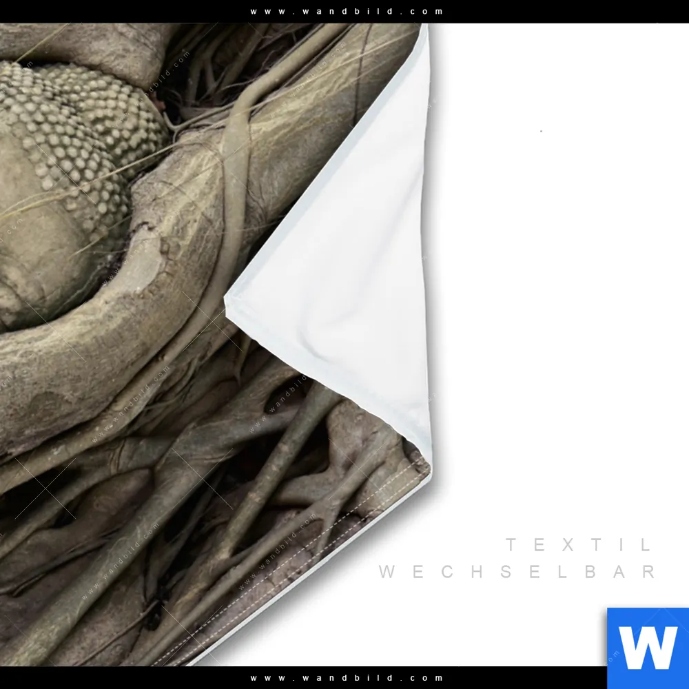 Wechselmotiv Textil | Buddha in Baumwurzeln | Hochformat
