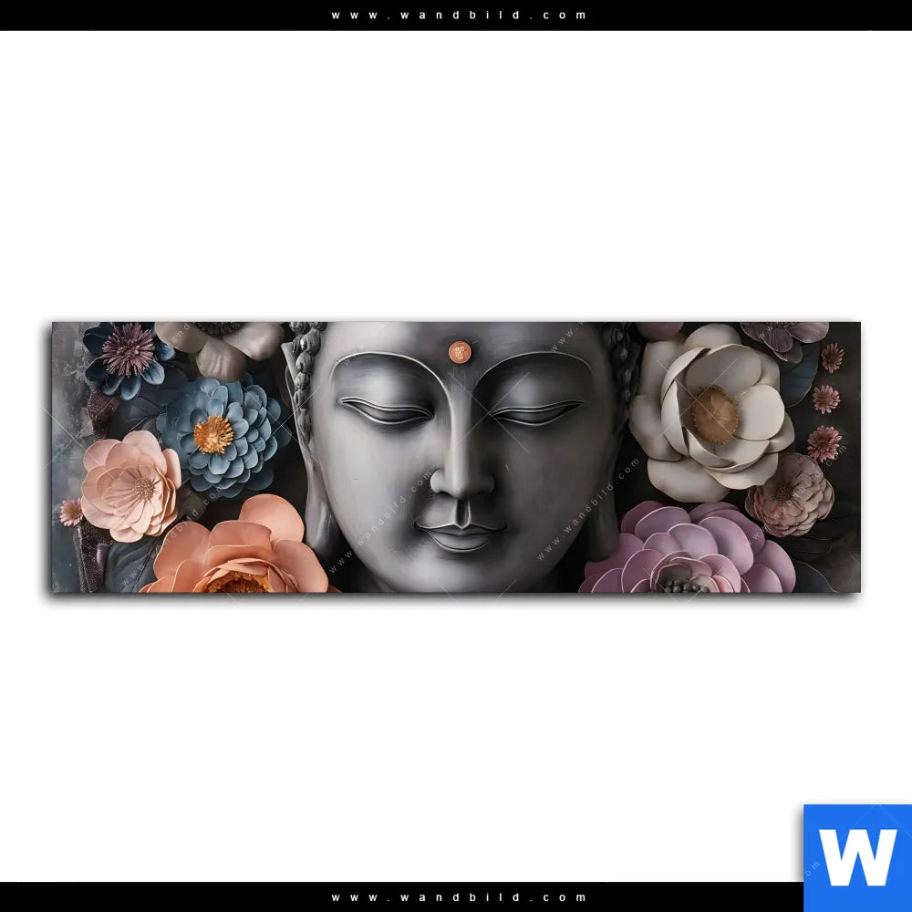 Wechselmotiv Textil | Buddha-Kunst mit Pastellblüten | Panorama