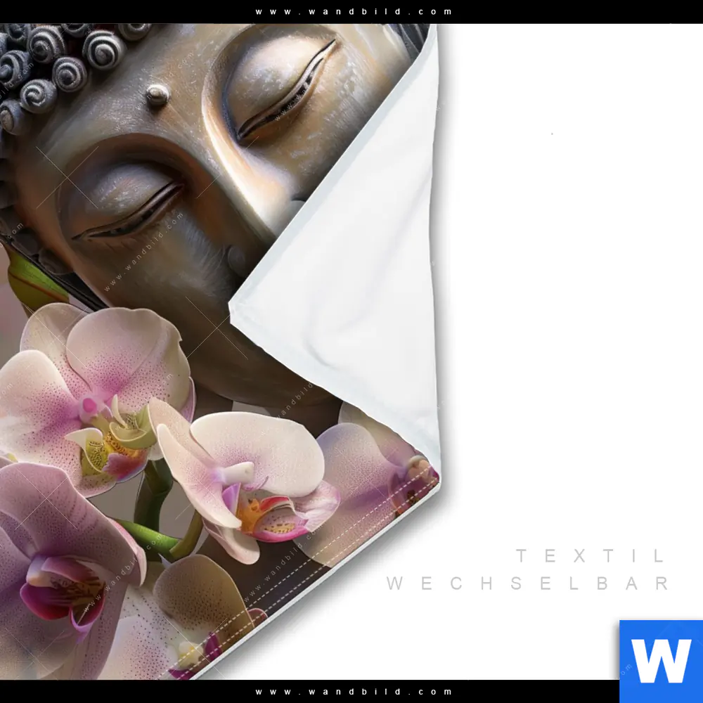 Wechselmotiv Textil | Buddha & Orchideen | Quadrat