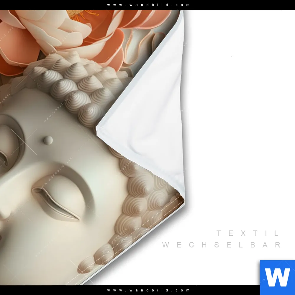 Wechselmotiv Textil | Buddha-Statue mit Blüten | Hochformat