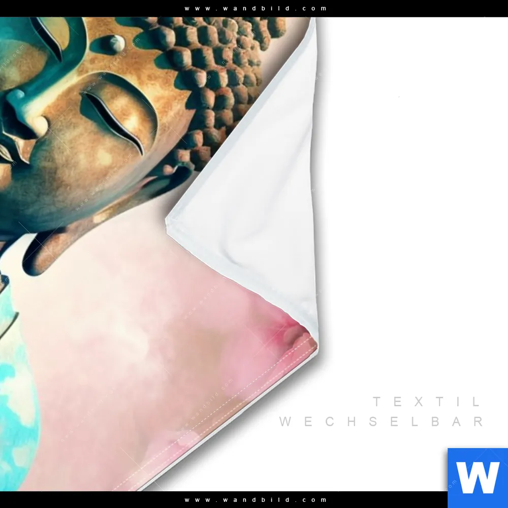 Wechselmotiv Textil | Buddha Statue mit Kirschblüten | Hochformat