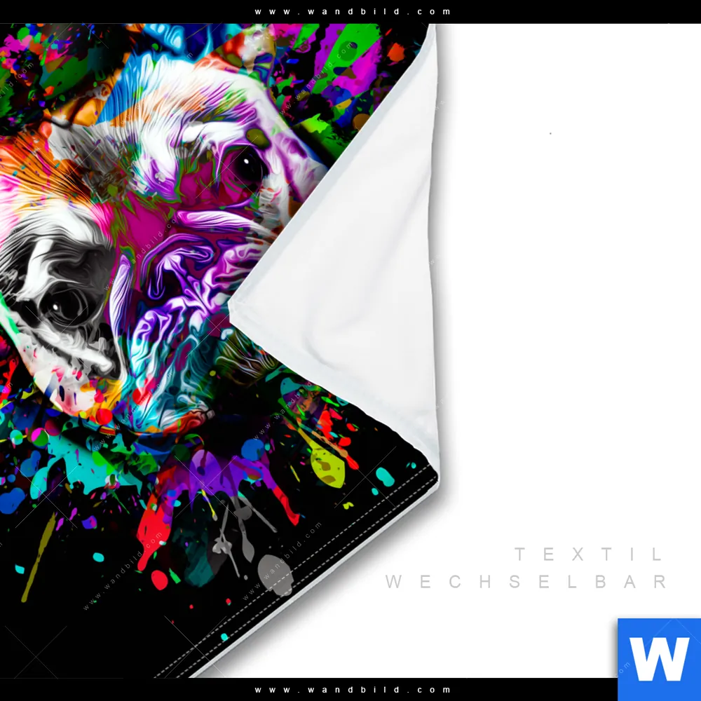 Wechselmotiv Textil | Bunte Bulldogge Schwarz | Quadrat