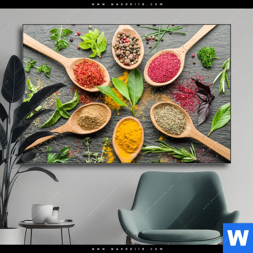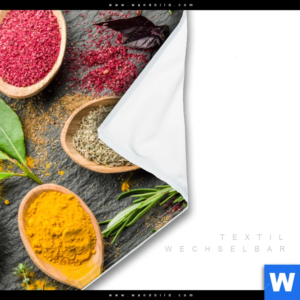 Wechselmotiv Textil | Bunte Gewürze in Holzlöffeln | Querformat