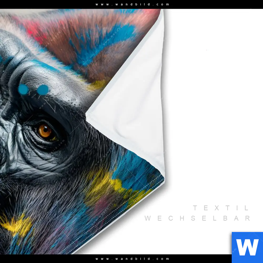 Wechselmotiv Textil | Bunter Gorilla mit Farbspritzern | Hochformat