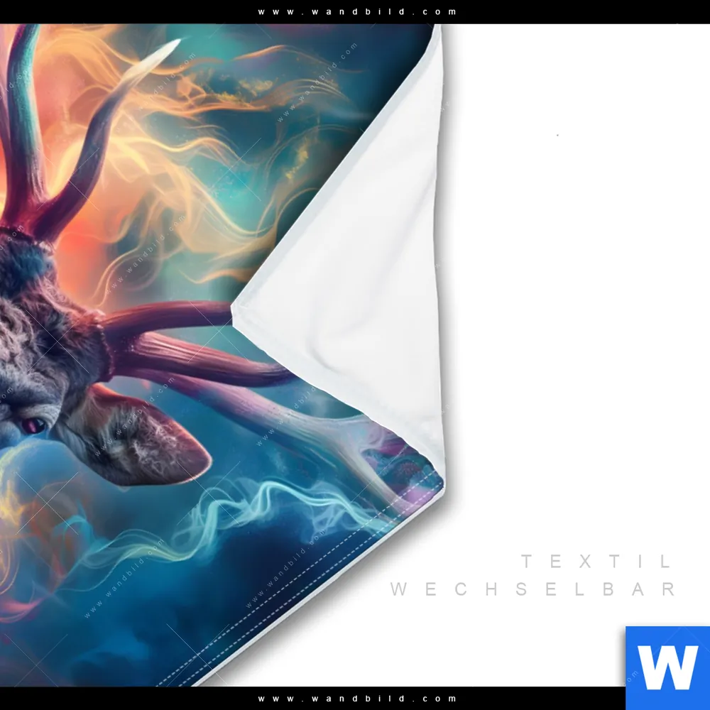 Wechselmotiv Textil | Bunter Hirsch in Flammen | Hochformat