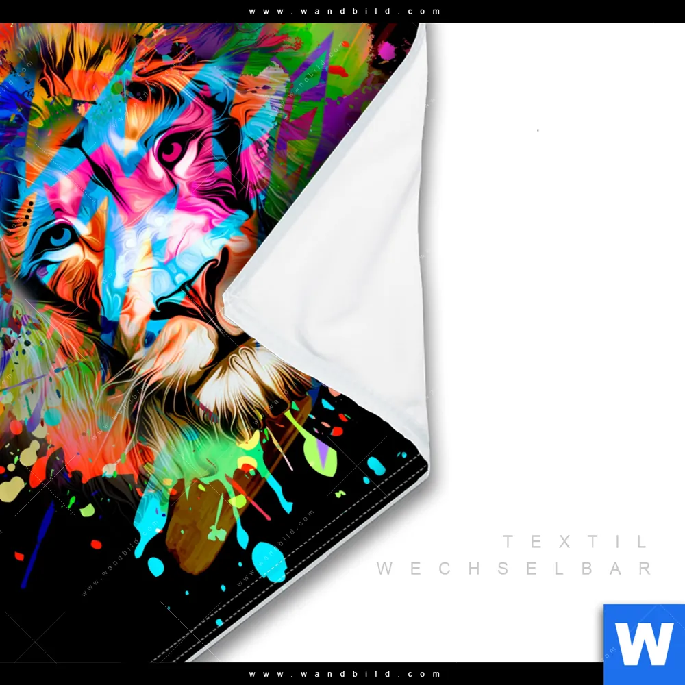 Wechselmotiv Textil | Bunter Löwe Schwarz | Quadrat