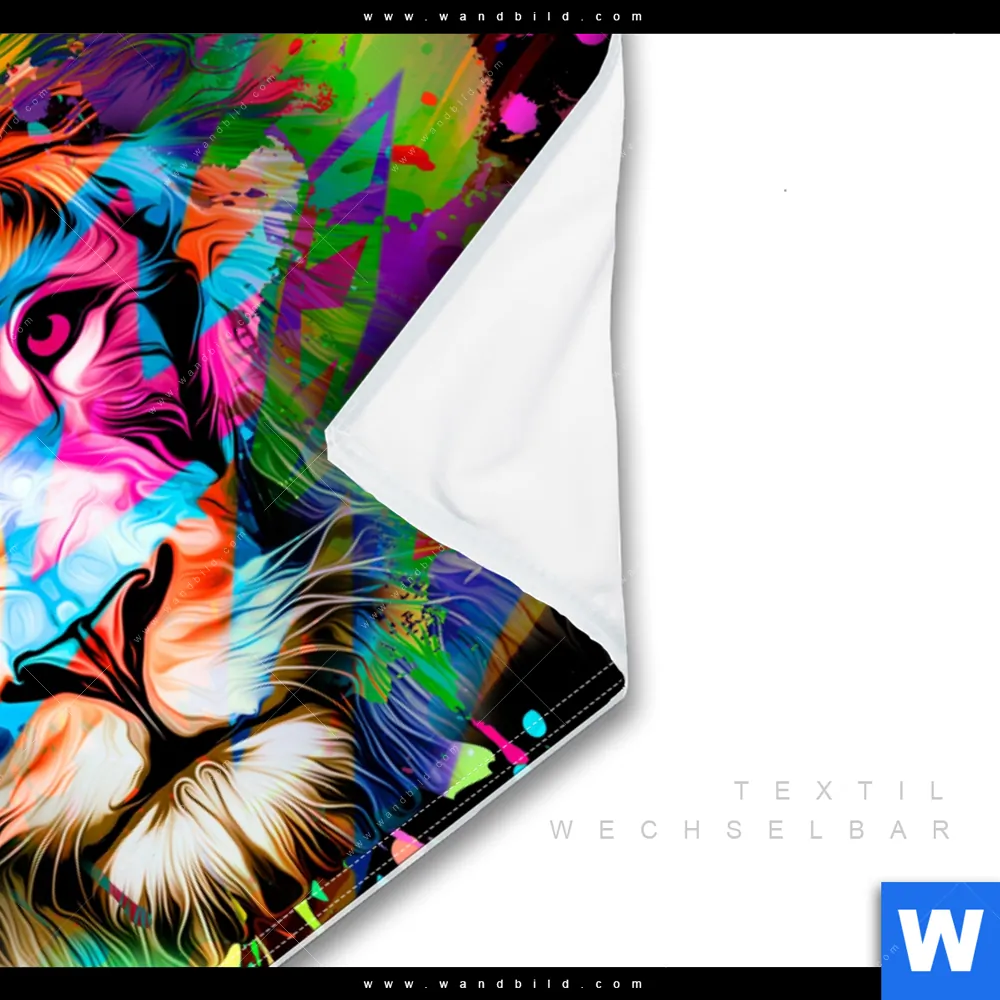 Wechselmotiv Textil | Bunter Löwe Schwarz | Querformat
