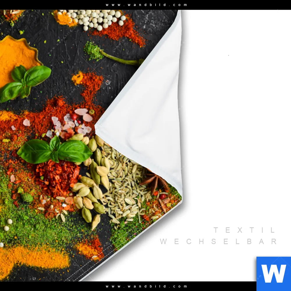 Wechselmotiv Textil | Die Weltkarte der Gewürze | Hochformat