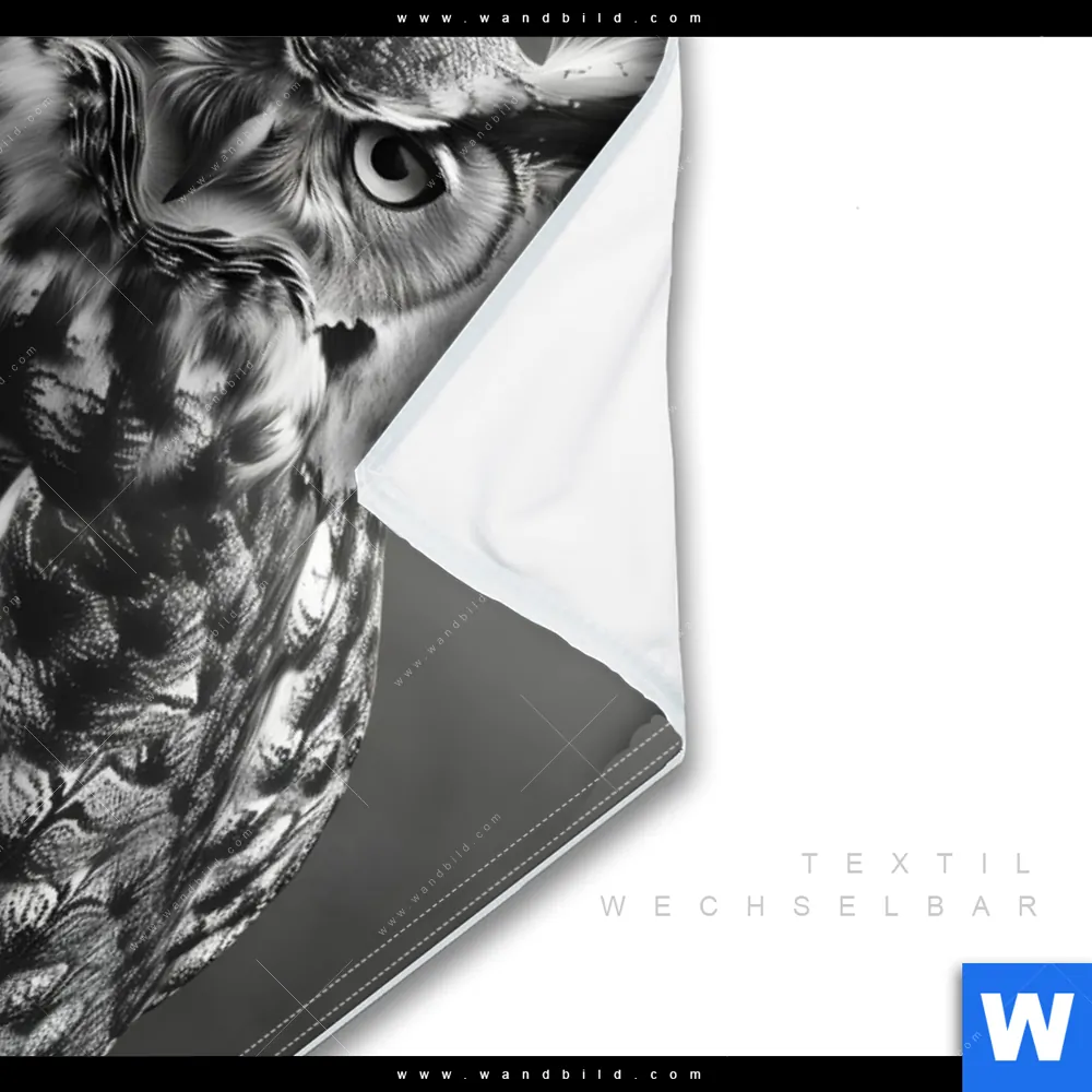 Wechselmotiv Textil | Düstere Eleganz der Eule | Hochformat