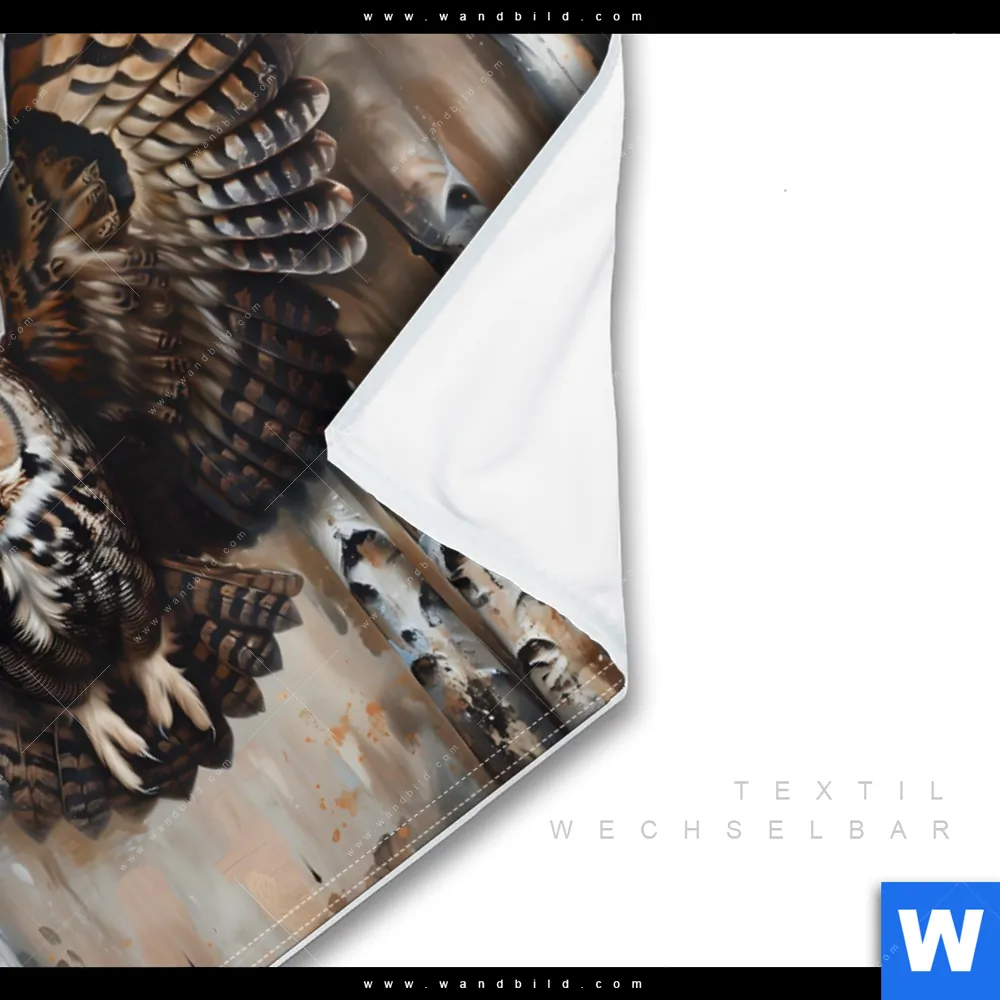Wechselmotiv Textil | Eule im Birkenwald | Querformat