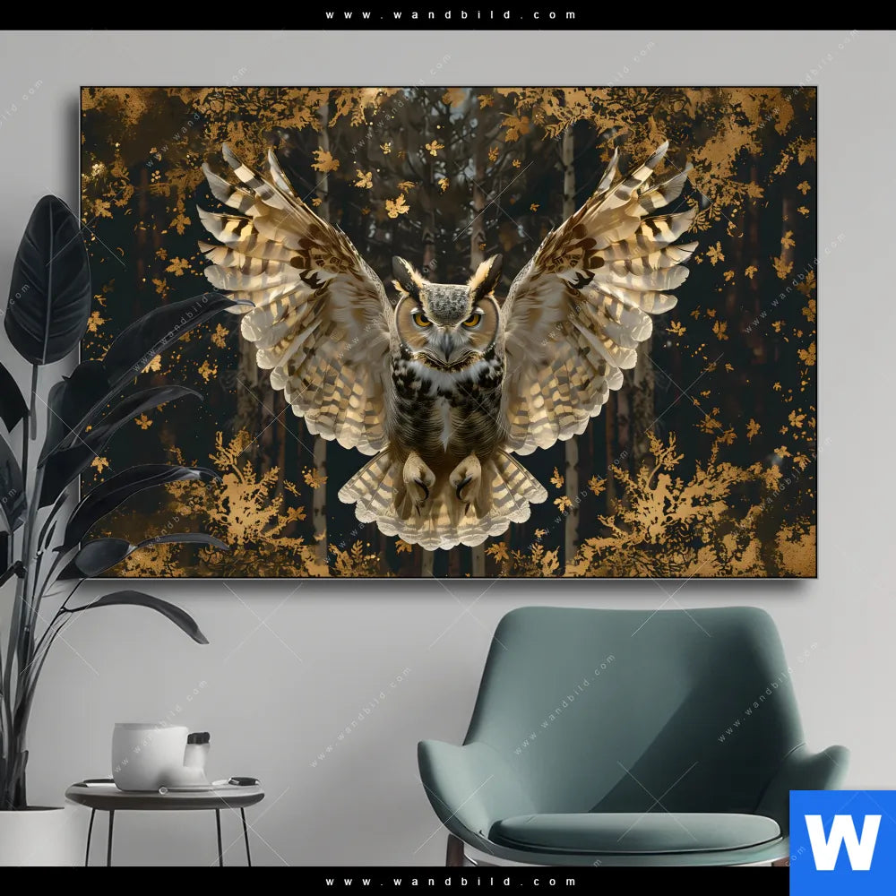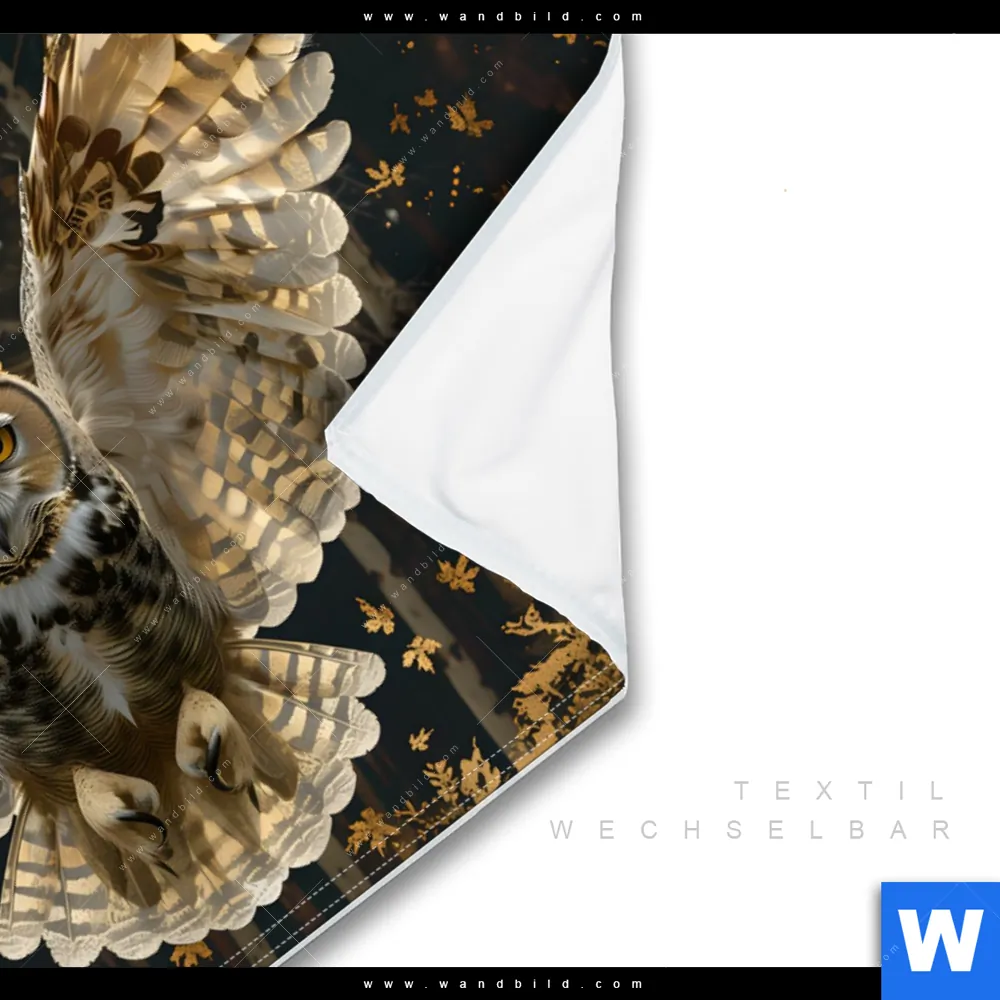 Wechselmotiv Textil | Eule inmitten goldener Blätter | Querformat