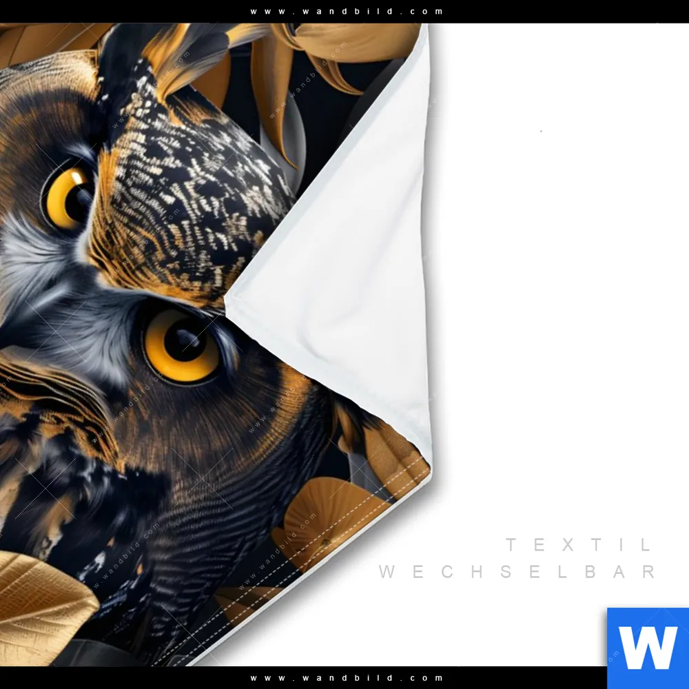 Wechselmotiv Textil | Eule und goldene Blätter | Hochformat