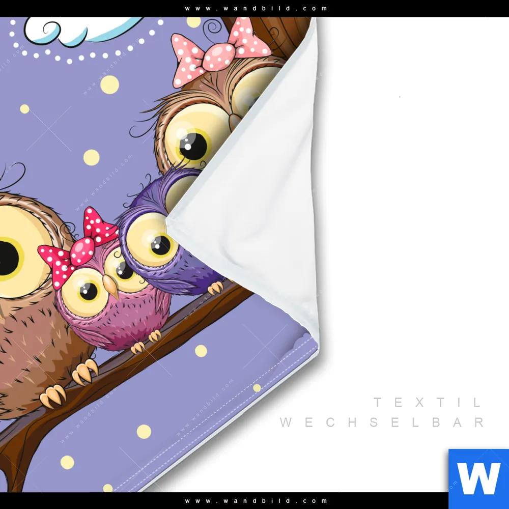Wechselmotiv Textil | Eulenfamilie | Quadrat