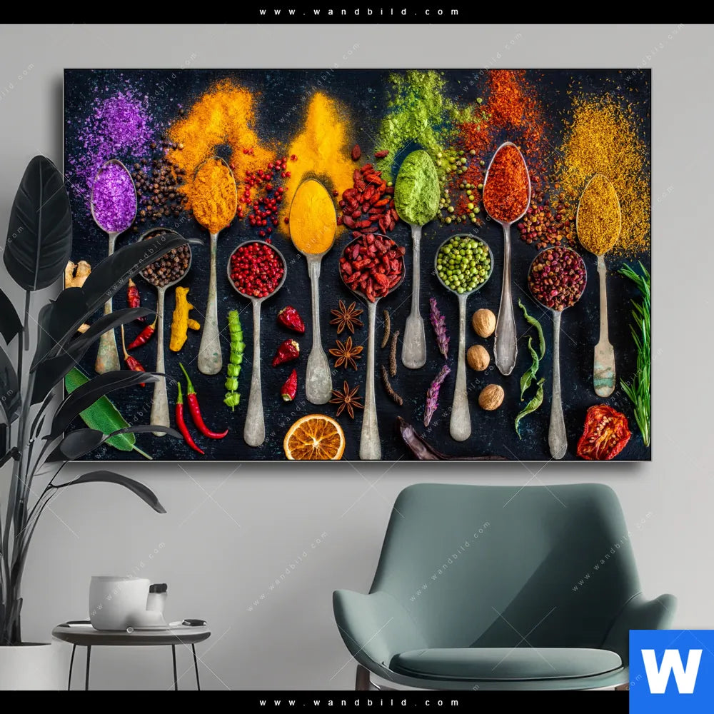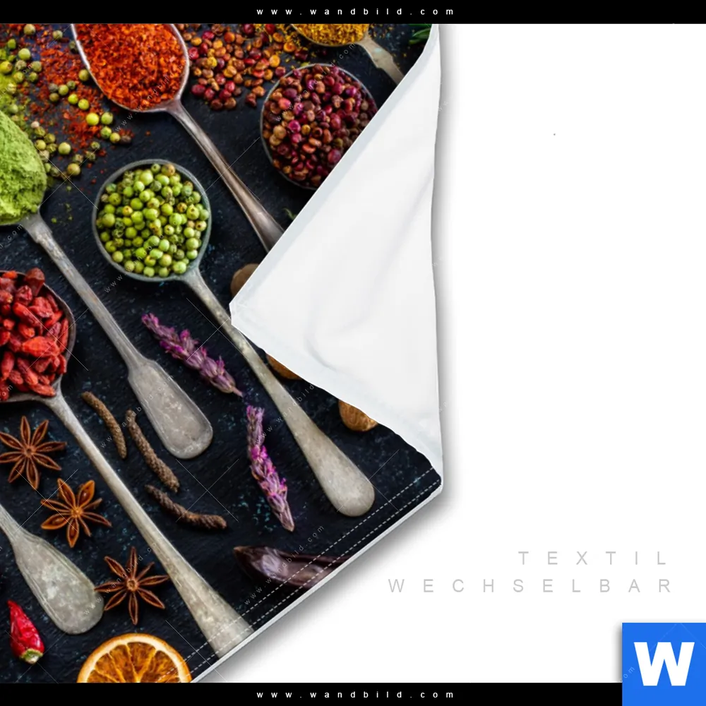 Wechselmotiv Textil | Exotische Gewürze auf Löffeln | Querformat