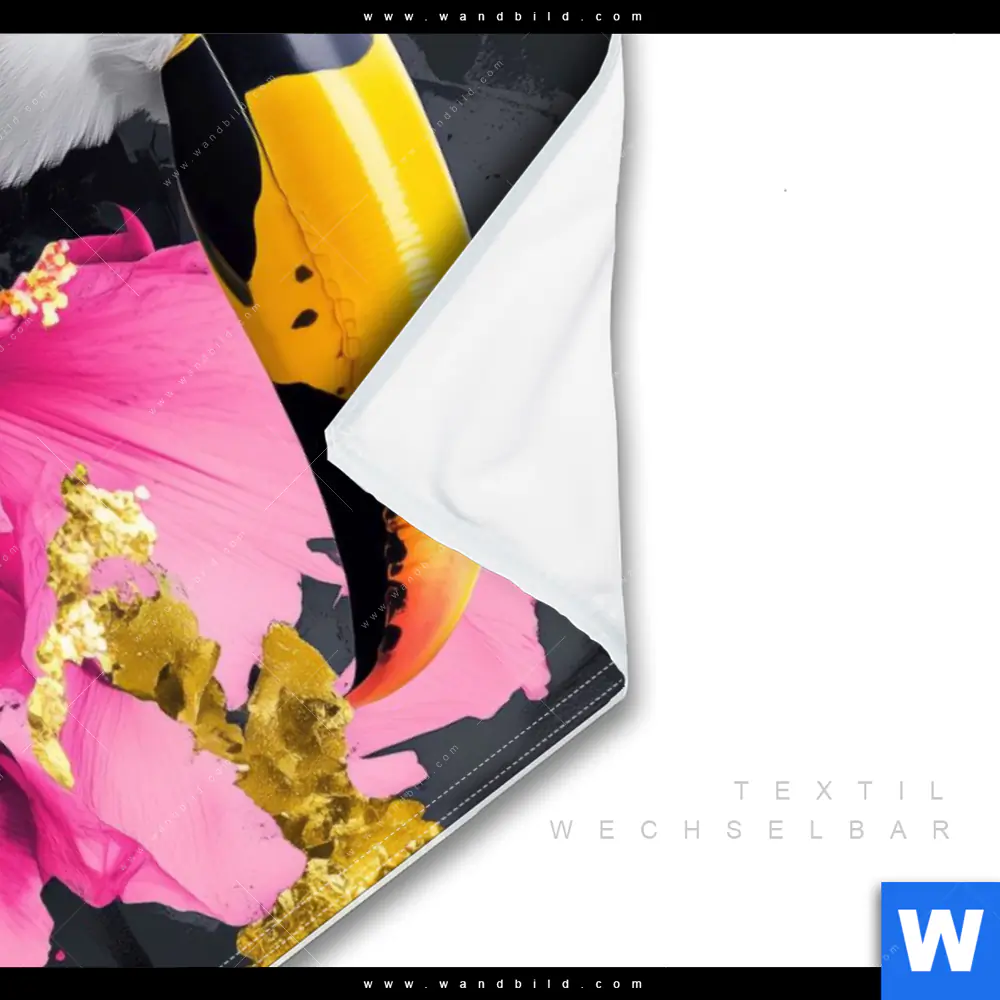Wechselmotiv Textil | Exotischer Tukan mit Blüten | Hochformat
