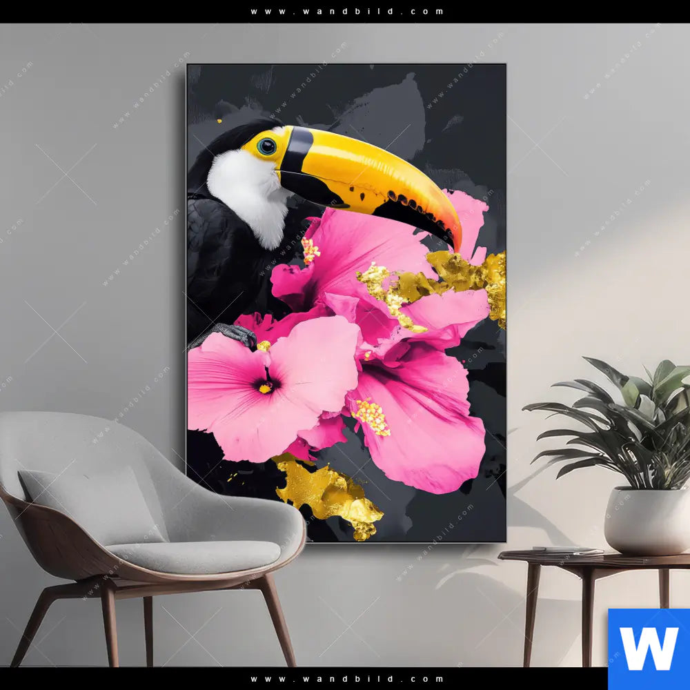 Wechselmotiv | Exotischer Tukan mit Blüten | Hochformat