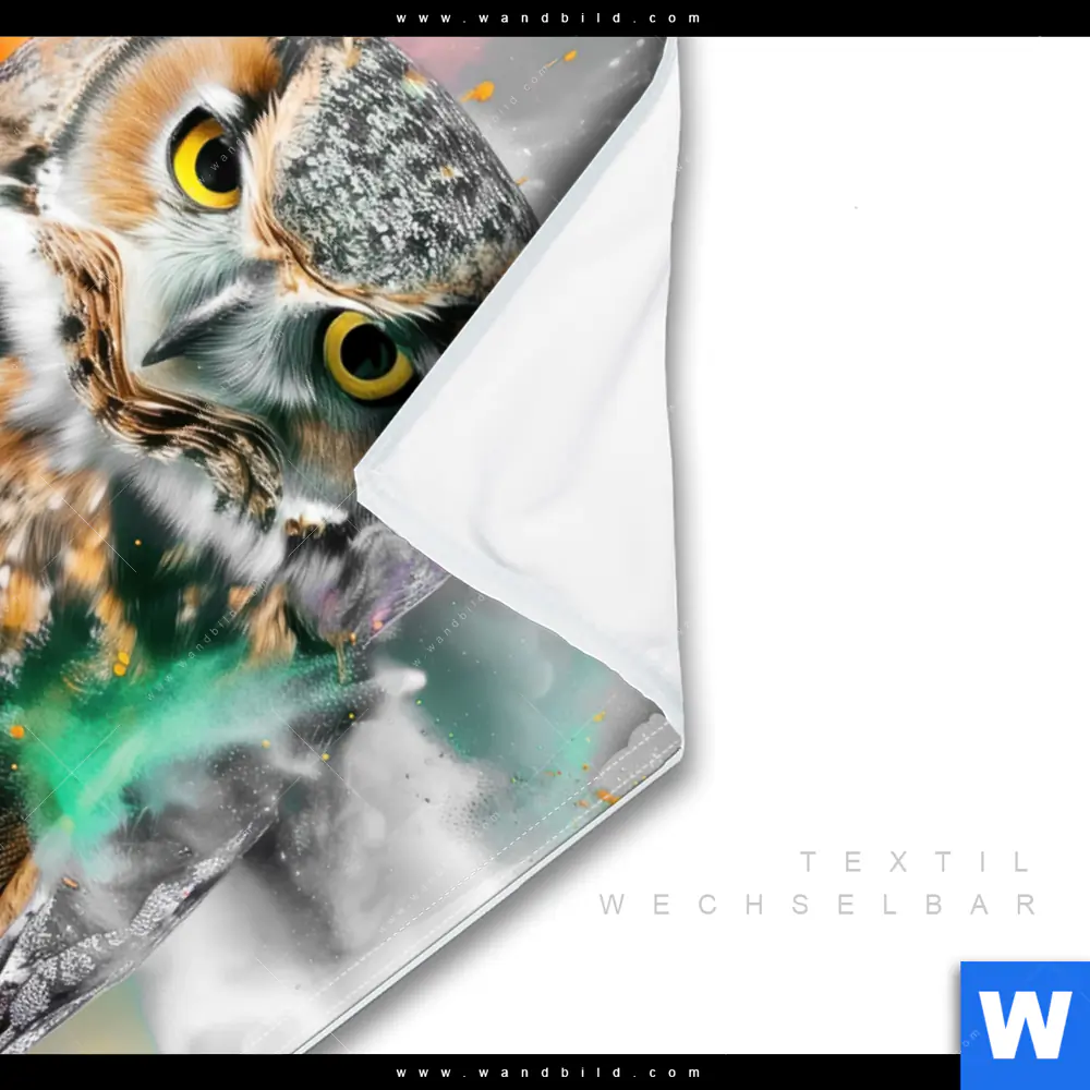 Wechselmotiv Textil | Farbenexplosion mit Eule | Hochformat