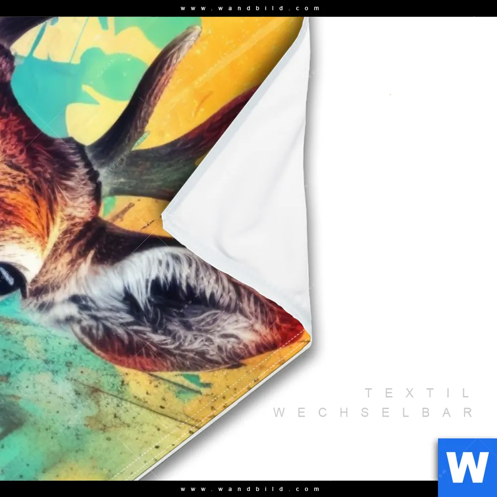 Wechselmotiv Textil | Farbenfrohes Hirschporträt | Hochformat