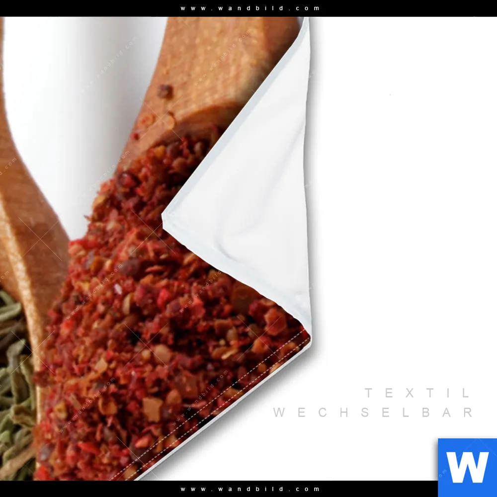 Wechselmotiv Textil | Farbige Gewürze auf Holzlöffel | Panorama