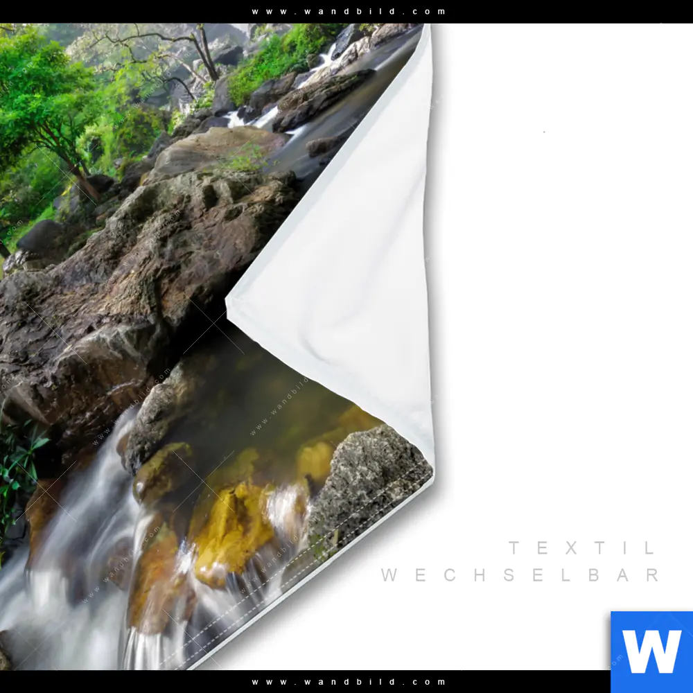 Wechselmotiv Textil | Felsenbach im Regenwald | Quadrat