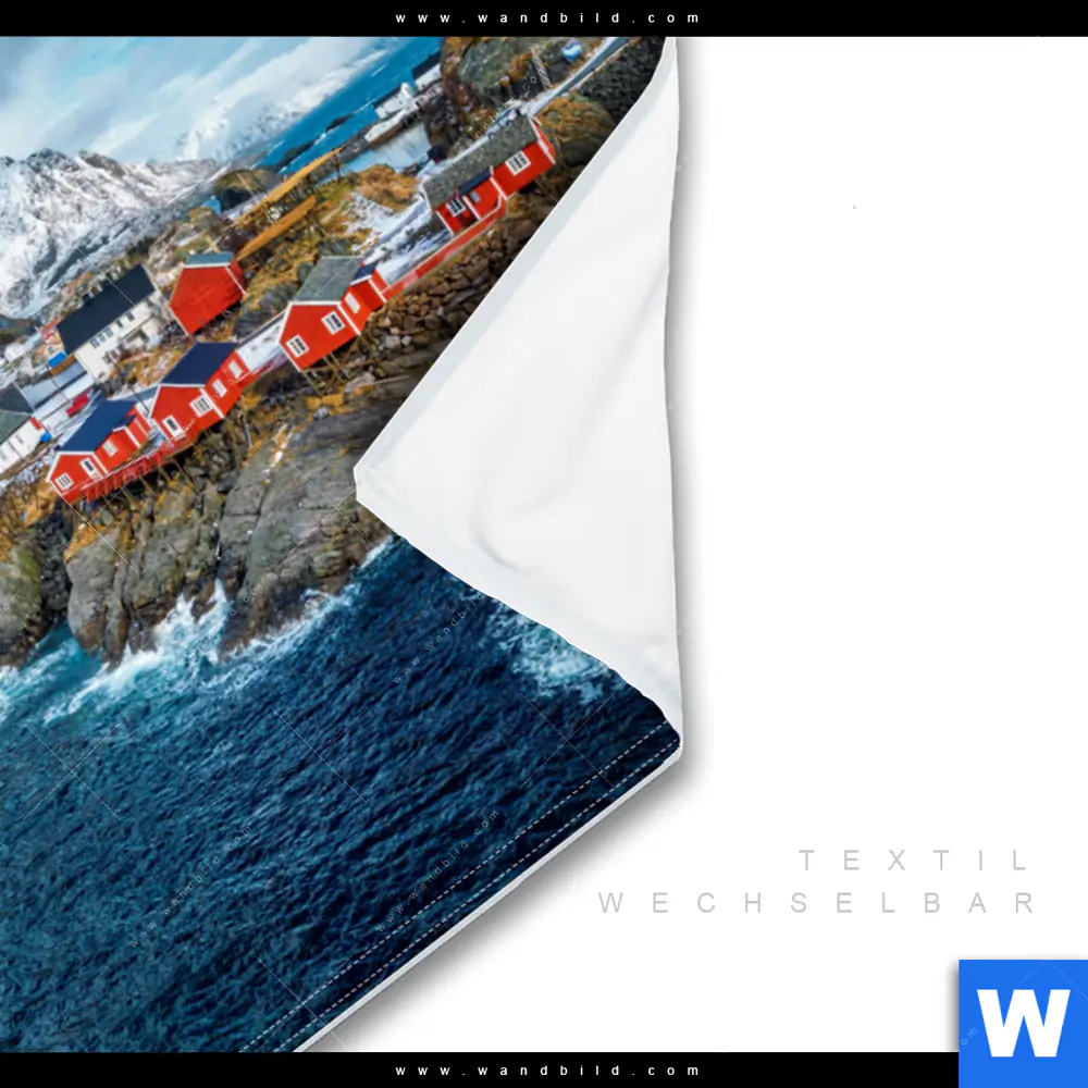 Wechselmotiv Textil | Fischerdorf mit roten Häusern | Querformat