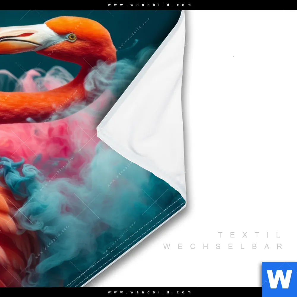Wechselmotiv Textil | Flamingo in bunter Rauchwolke | Hochformat