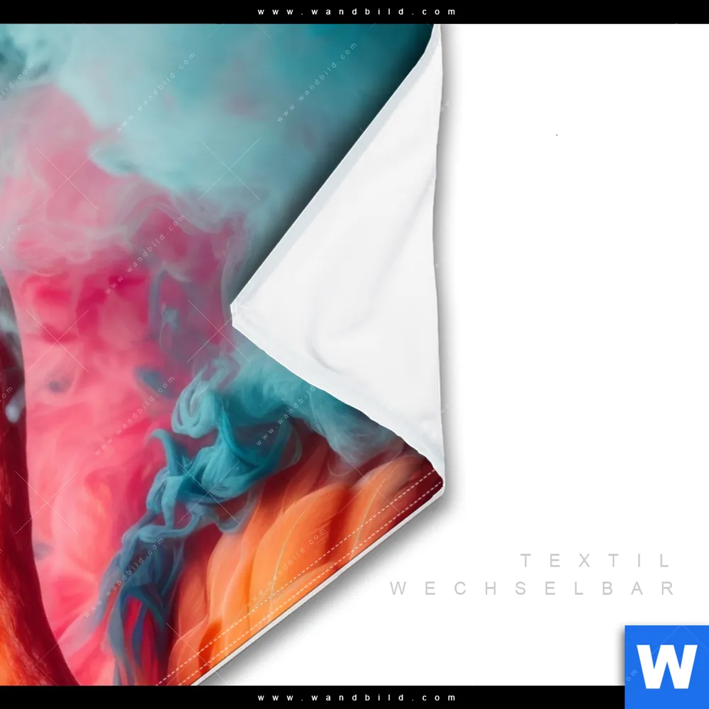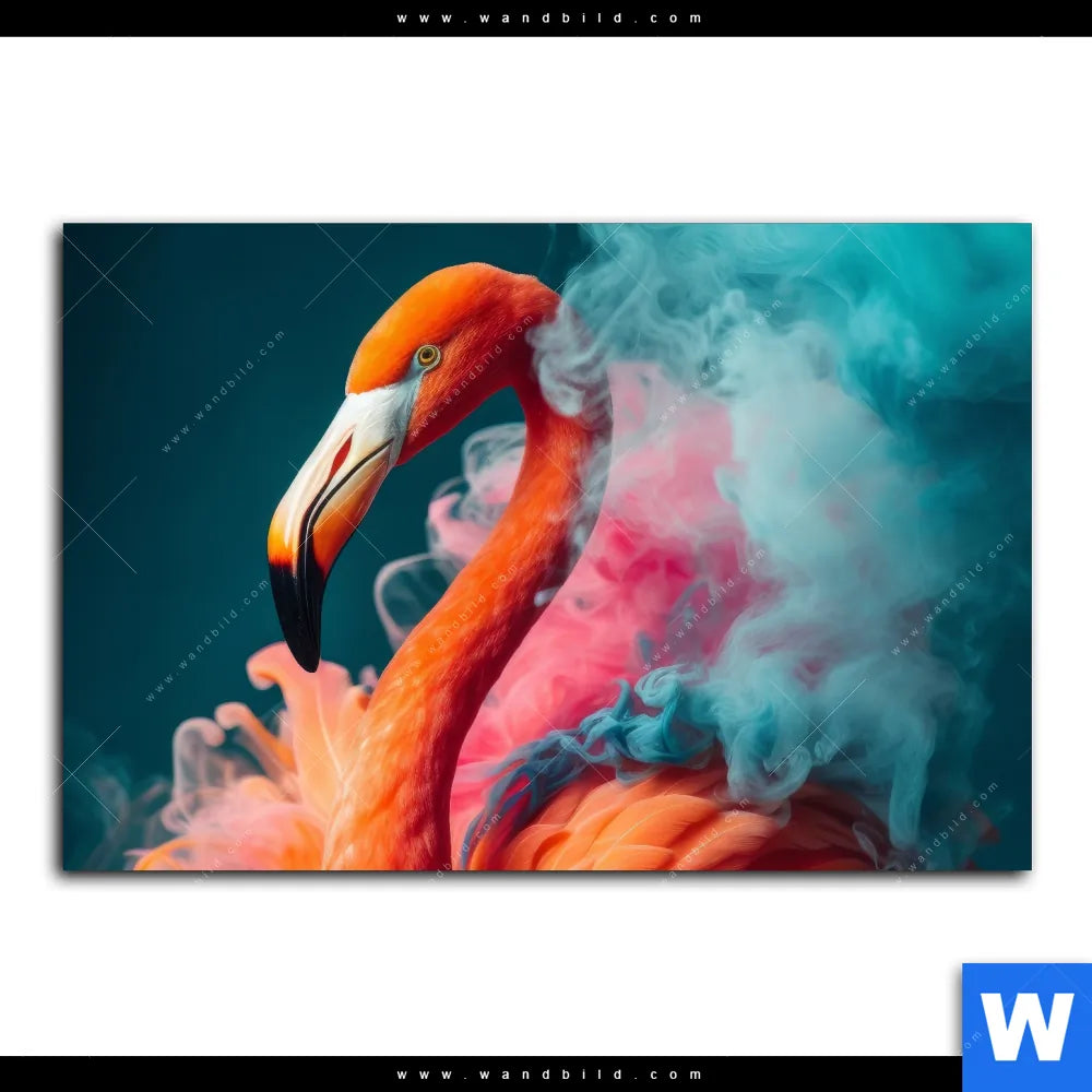 Wechselmotiv Textil | Flamingo in bunter Rauchwolke | Querformat