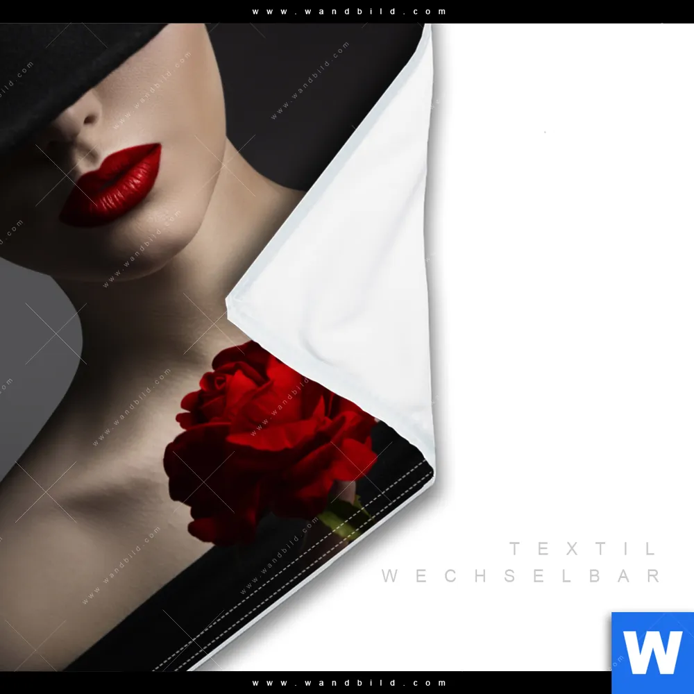 Wechselmotiv Textil | Frau mit Hut & Rose | Quadrat