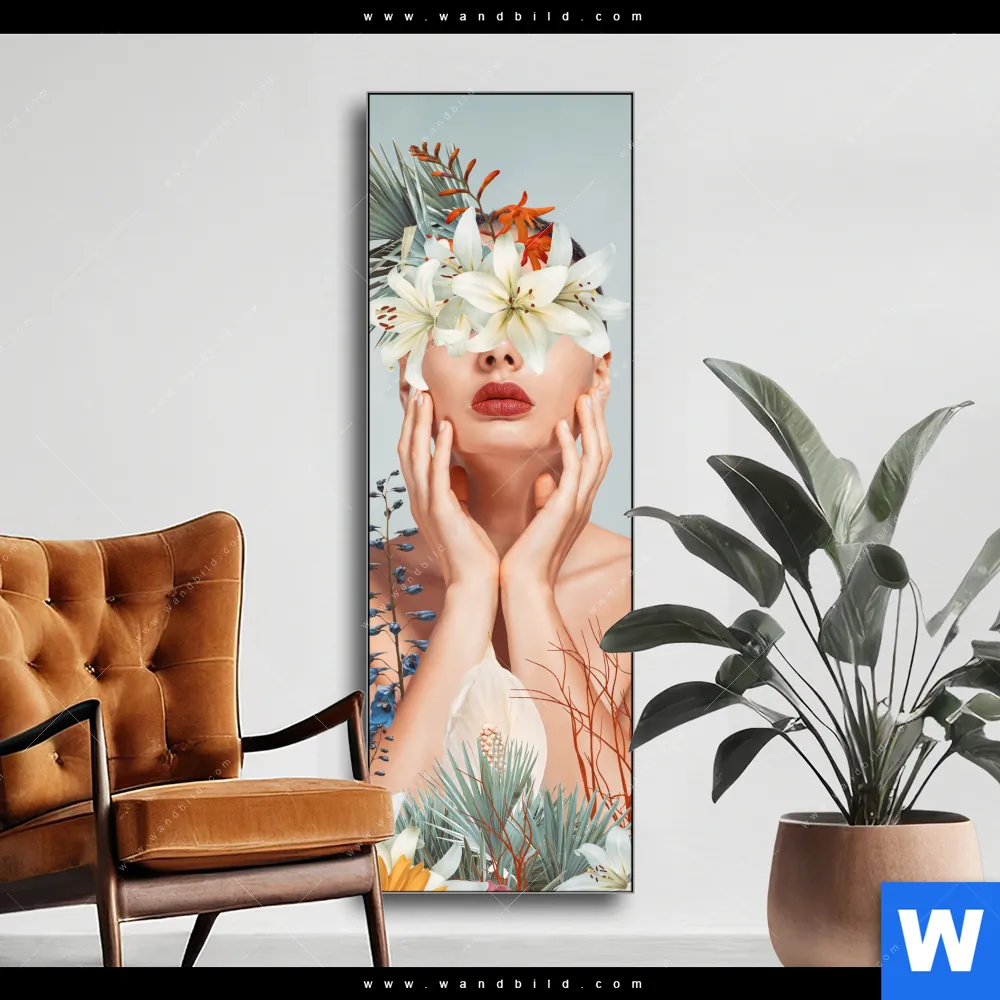 Wechselmotiv Textil | Frauenportrait mit Blumen | Schmal