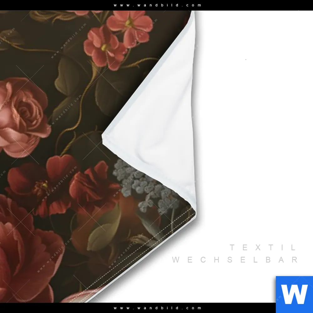 Wechselmotiv Textil | Friedlicher Hirsch und Blüten | Panorama