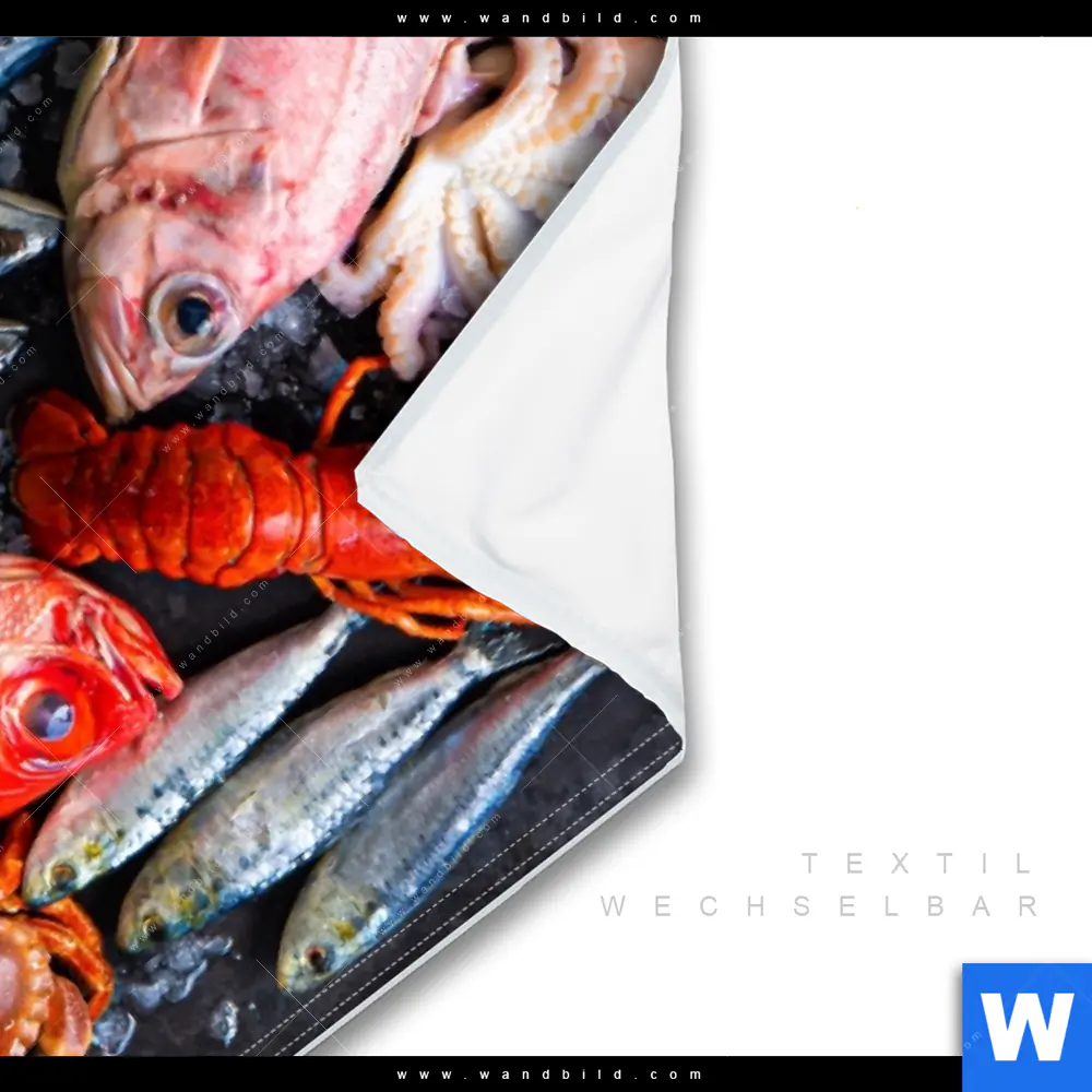 Wechselmotiv Textil | Frischer Fisch und Meeresfrüchte | Hochformat