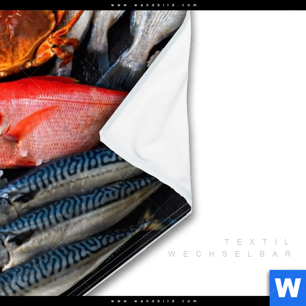 Wechselmotiv Textil | Frischer Fisch und Meeresfrüchte | Querformat