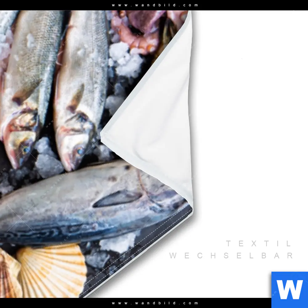 Wechselmotiv Textil | Frischer Fisch und Meeresfrüchte | Schmal