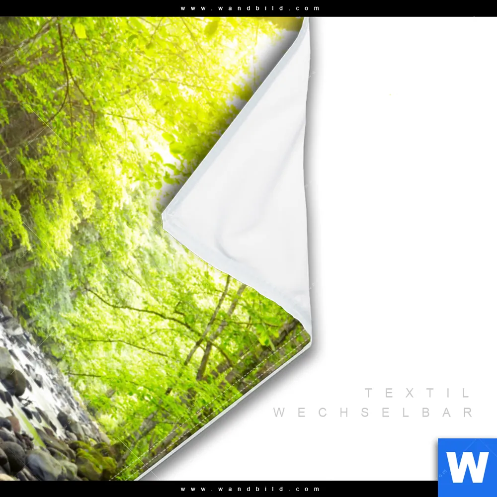 Wechselmotiv Textil | Gebirgsfluss im Wald | Hochformat