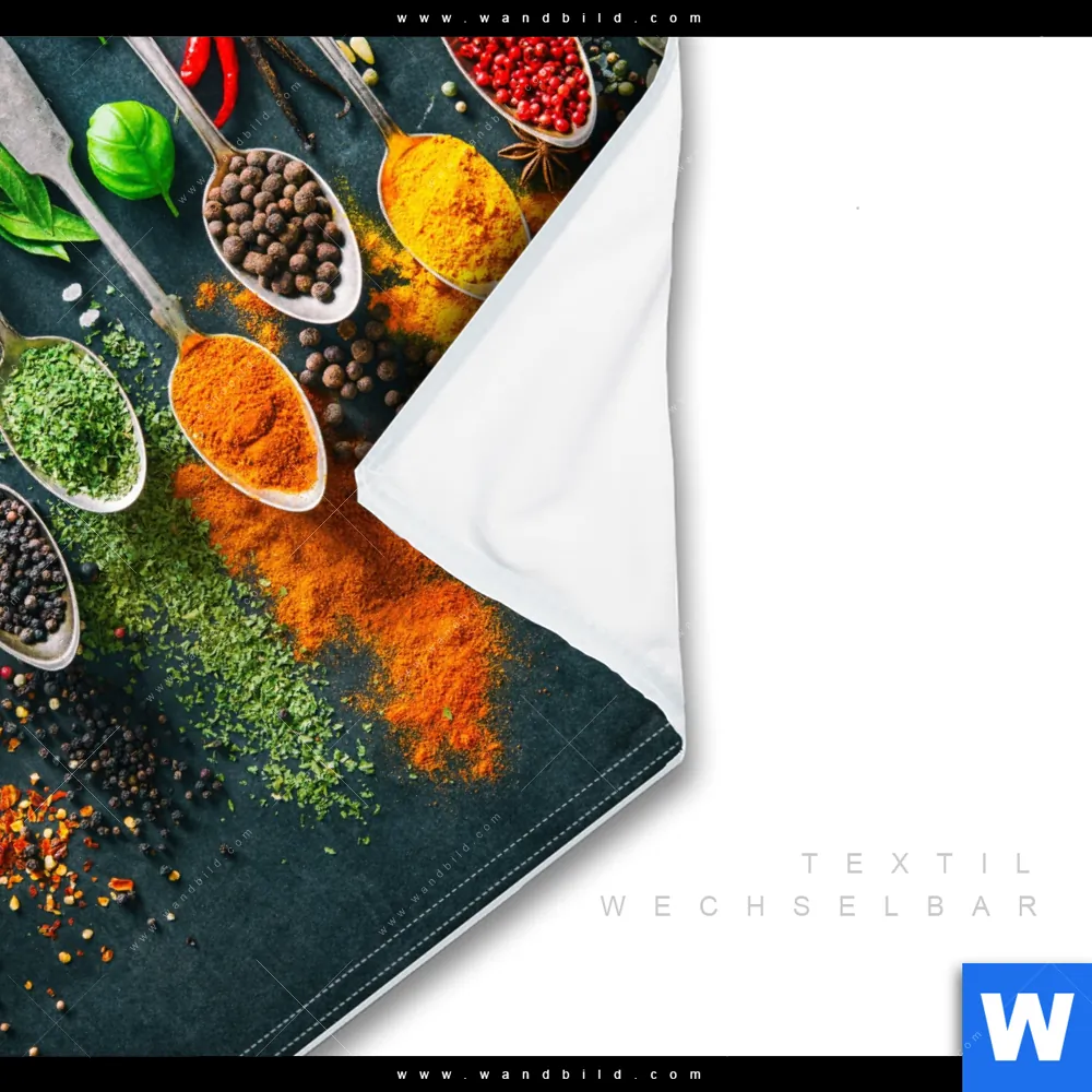 Wechselmotiv Textil | Gewürze auf Löffeln | Quadrat