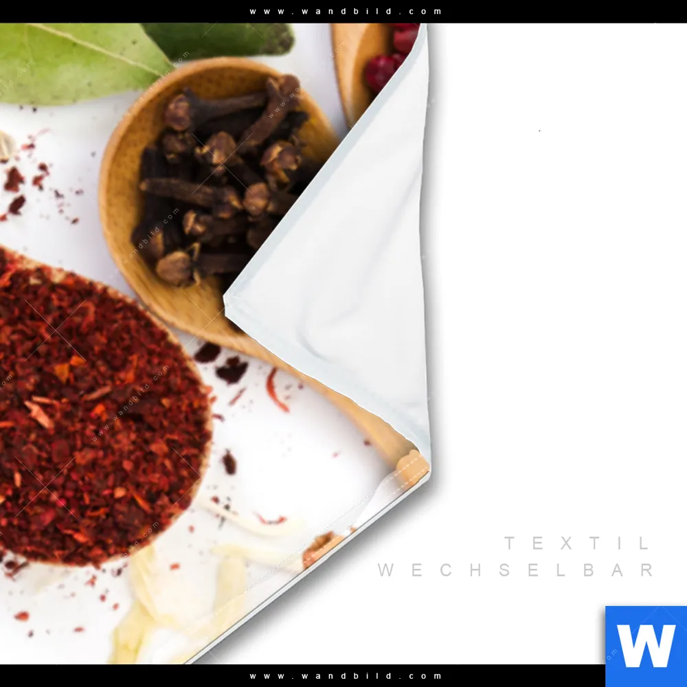 Wechselmotiv Textil | Gewürze auf Löffeln - weiß | Panorama