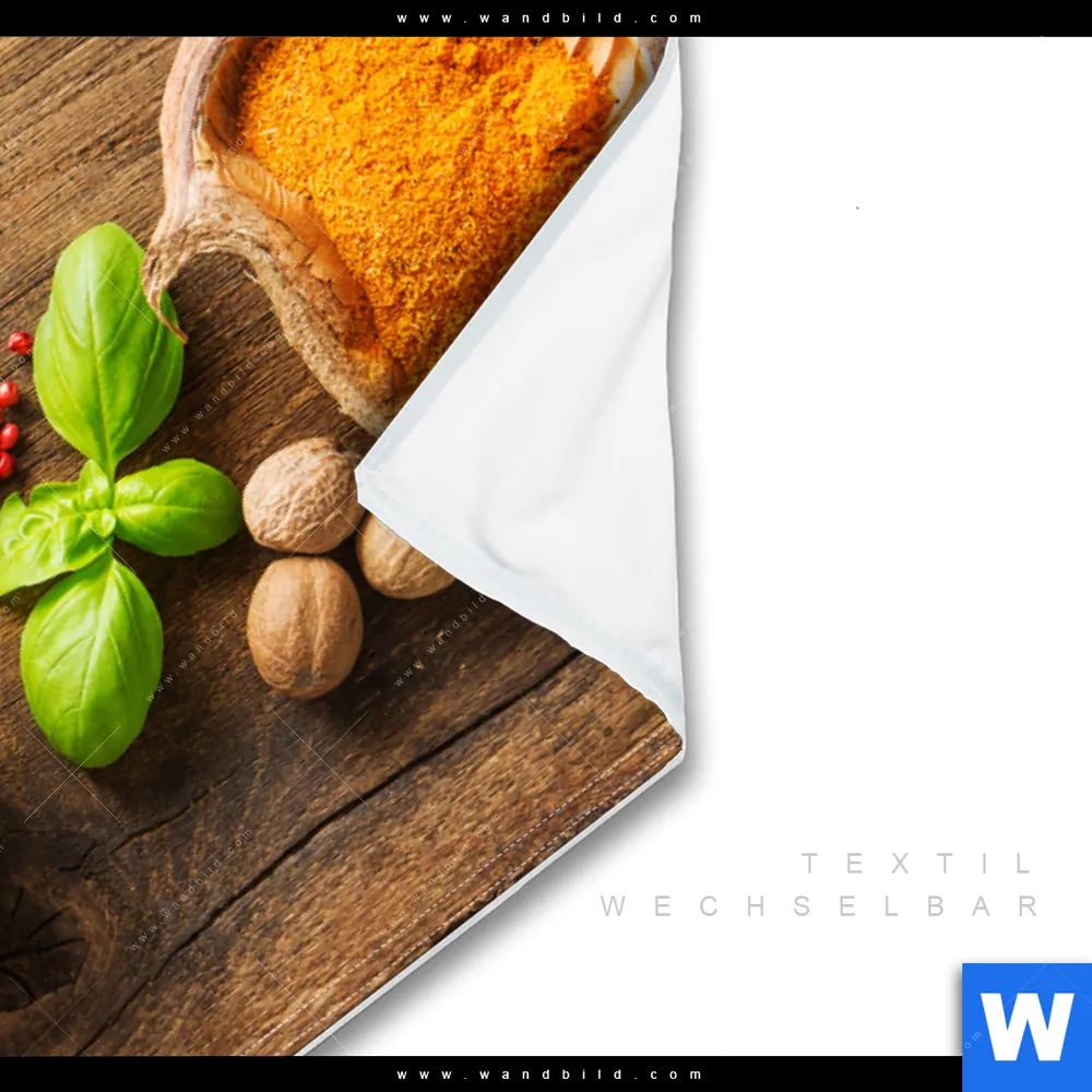 Wechselmotiv Textil | Gewürze & Kräuter auf Holz | Quadrat