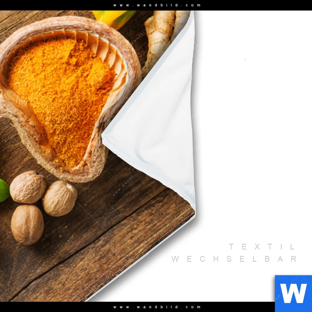Wechselmotiv Textil | Gewürze & Kräuter auf Holz | Querformat