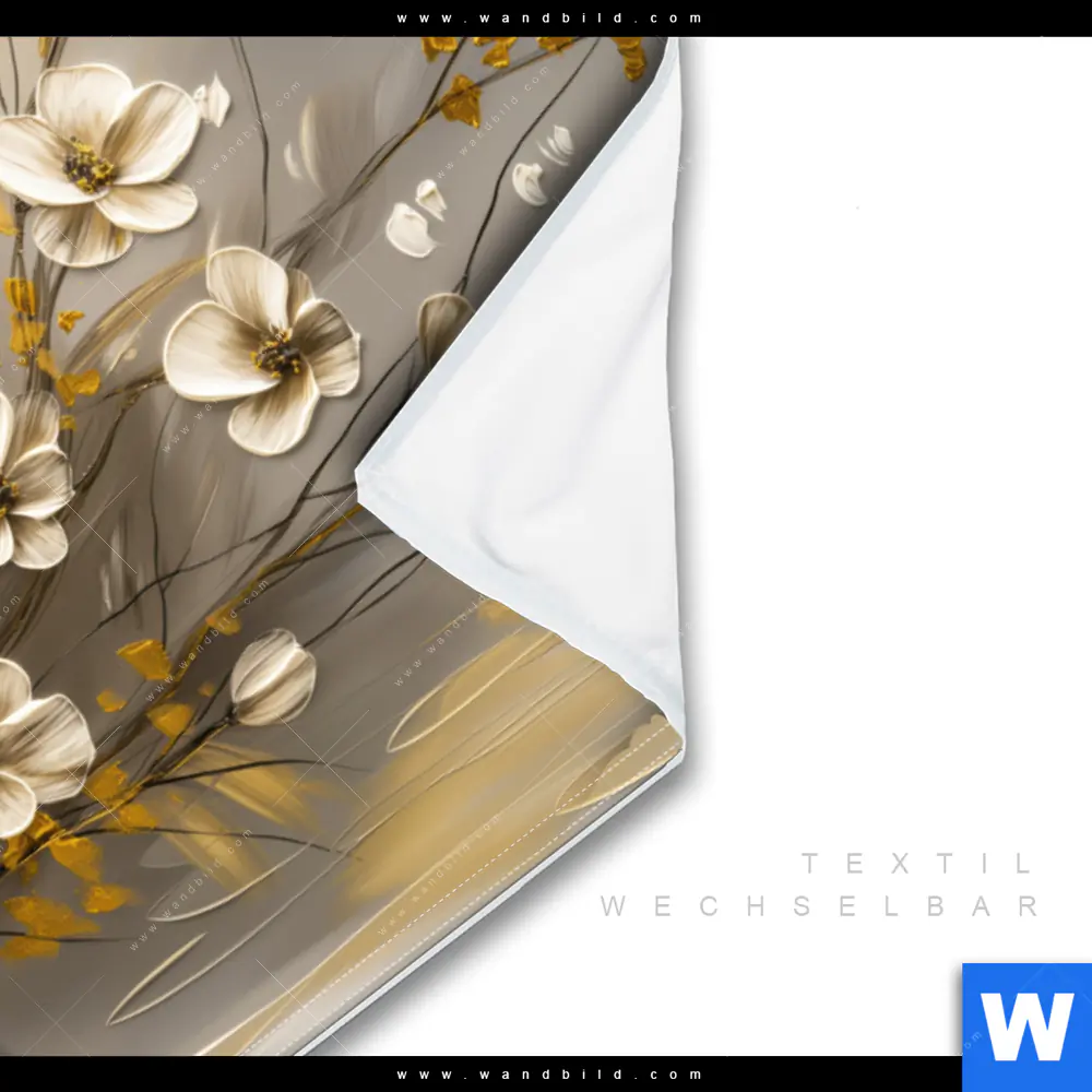 Wechselmotiv Textil | Goldene Blütenpoesie | Querformat