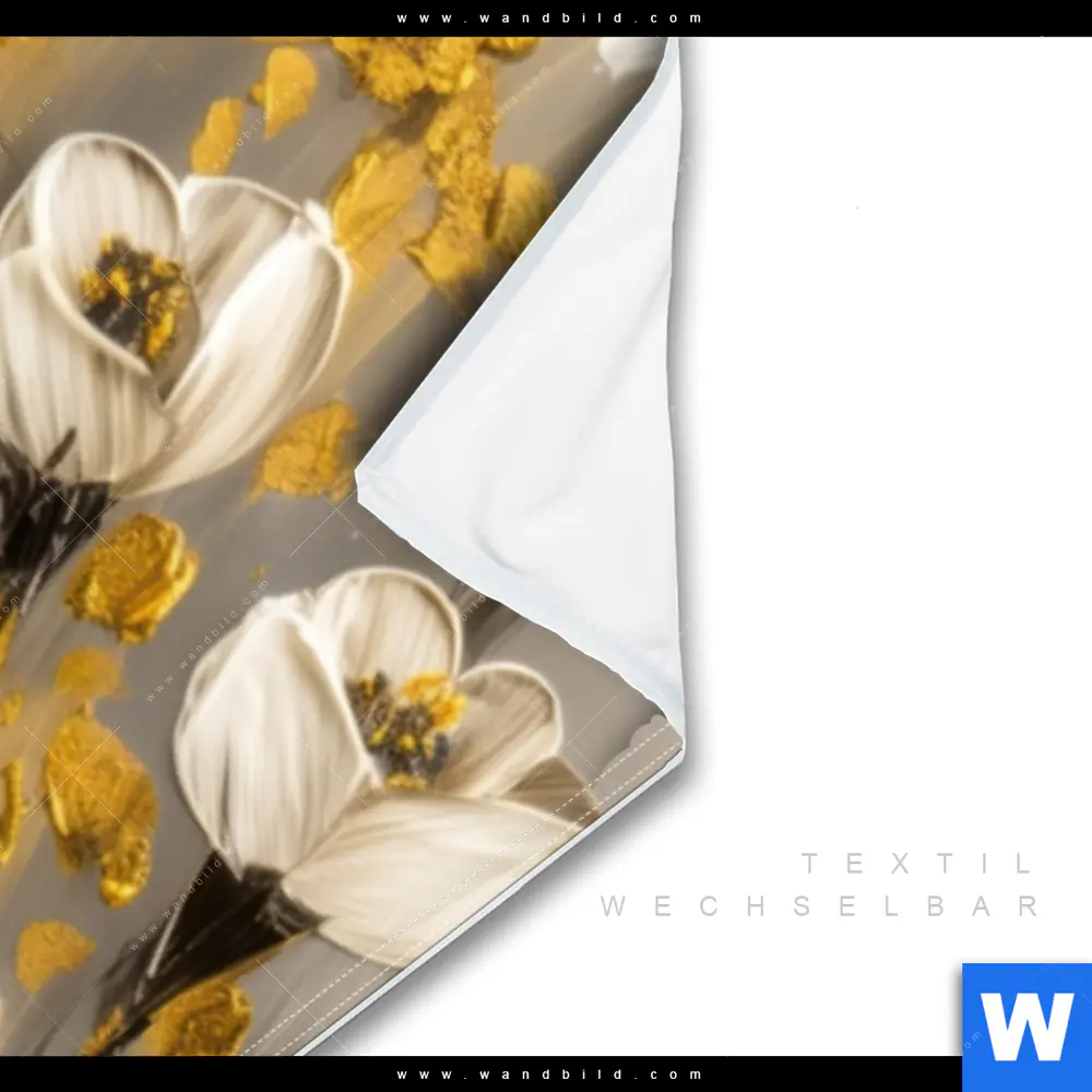Wechselmotiv Textil | Goldene Blütenpoesie | Schmal