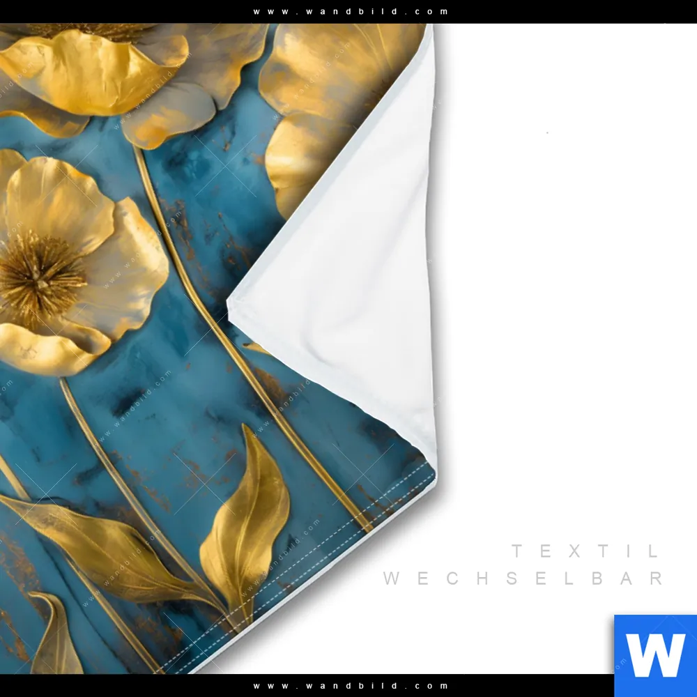Wechselmotiv Textil | Goldene Blumen auf Blau | Querformat