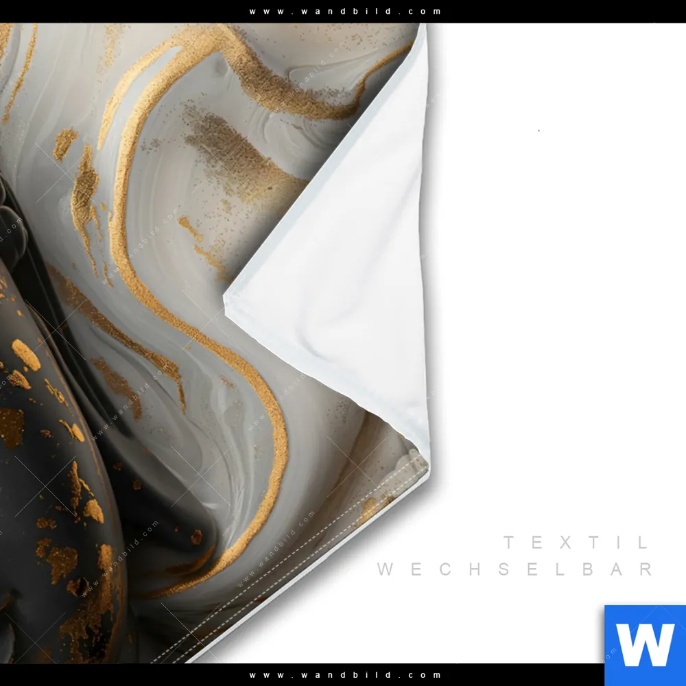 Wechselmotiv Textil | Goldener Buddha Fluid Art | Querformat