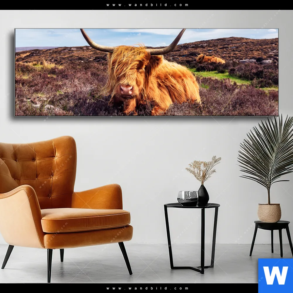 Wechselmotiv Textil | Grasendes Hochlandrind | Panorama