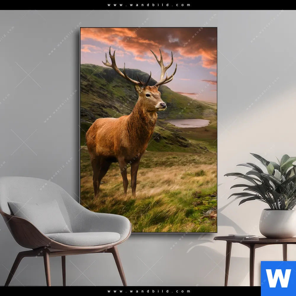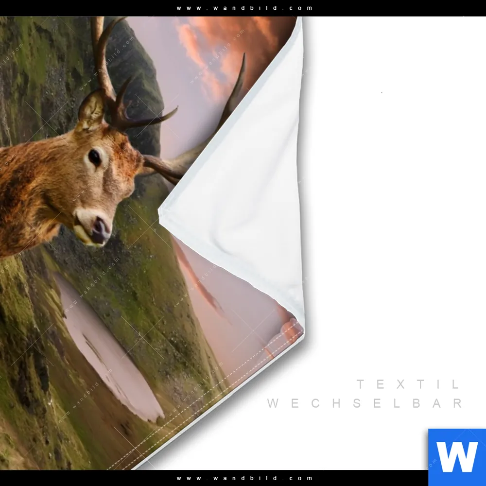 Wechselmotiv Textil | Hirsch in Gebirgslandschaft | Hochformat