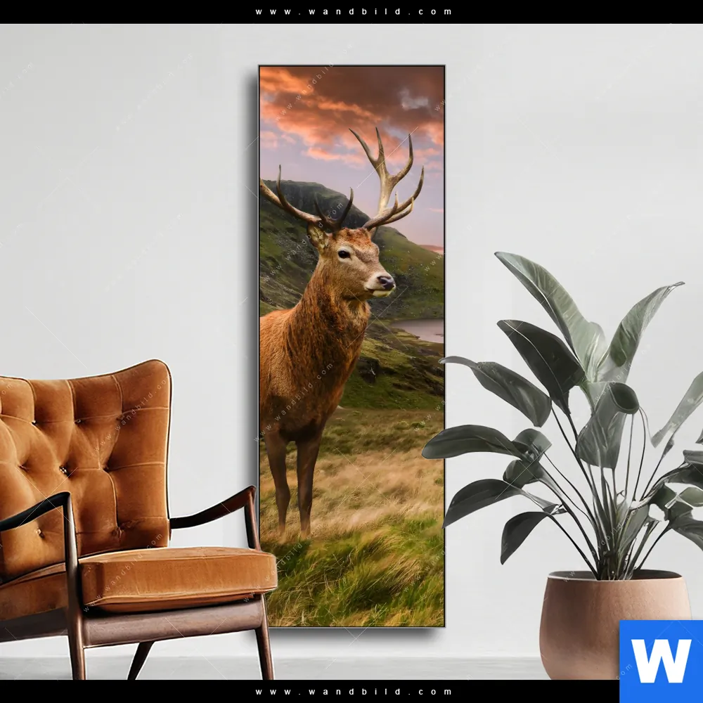 Wechselmotiv Textil | Hirsch in Gebirgslandschaft | Schmal