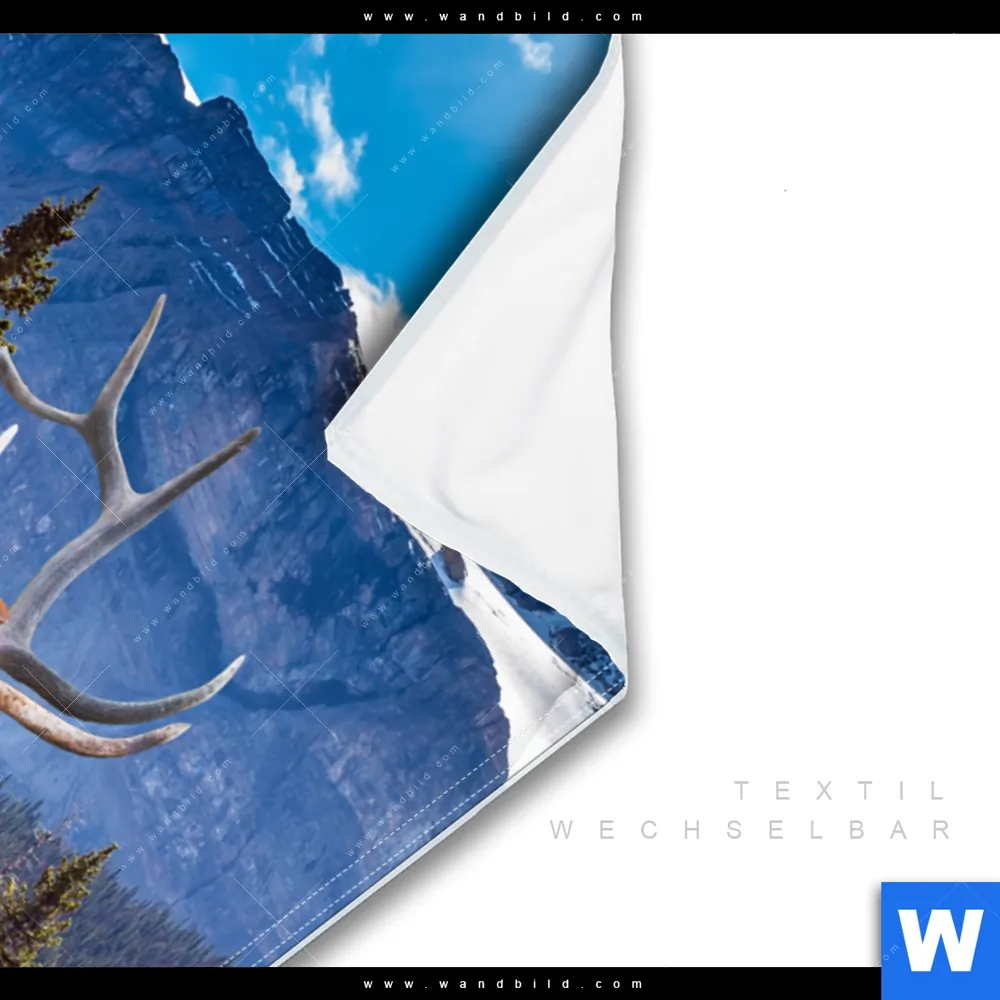 Wechselmotiv Textil | Hirsch vor Bergkulisse | Hochformat