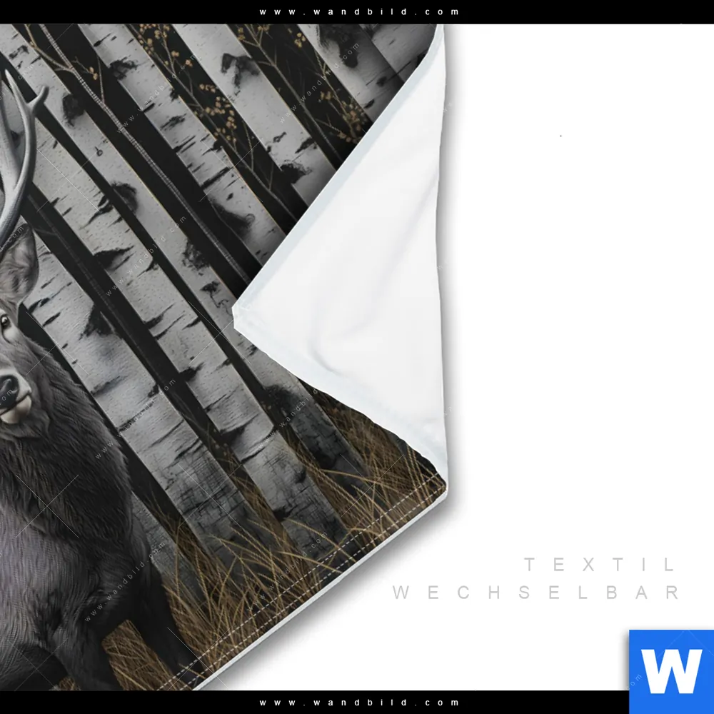 Wechselmotiv Textil | Hirschporträt vor Birken | Querformat