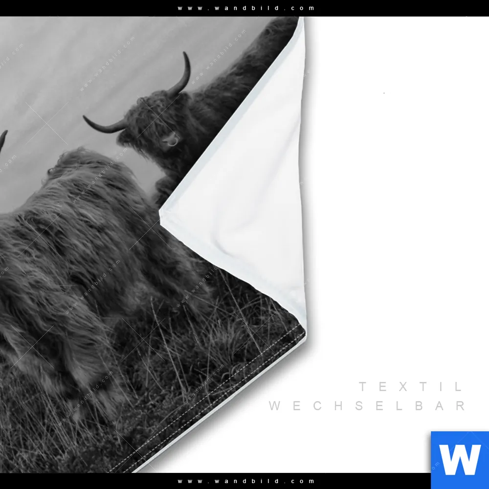 Wechselmotiv Textil | Hochland-Rind Schwarz-Weiß | Querformat